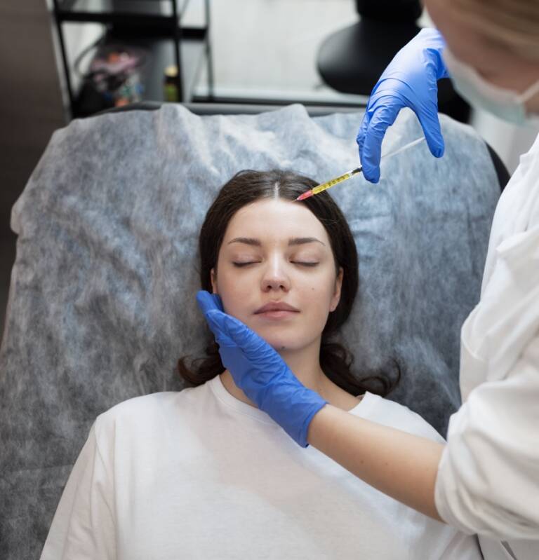 Platelet-Rich Plasma (PRP) combined with Concentrated Growth Factors (CGF) is injected into targeted areas to accelerate healing, stimulate tissue repair, and promote skin rejuvenation. This natural therapy harnesses your body’s healing properties to enhance recovery and improve skin health.